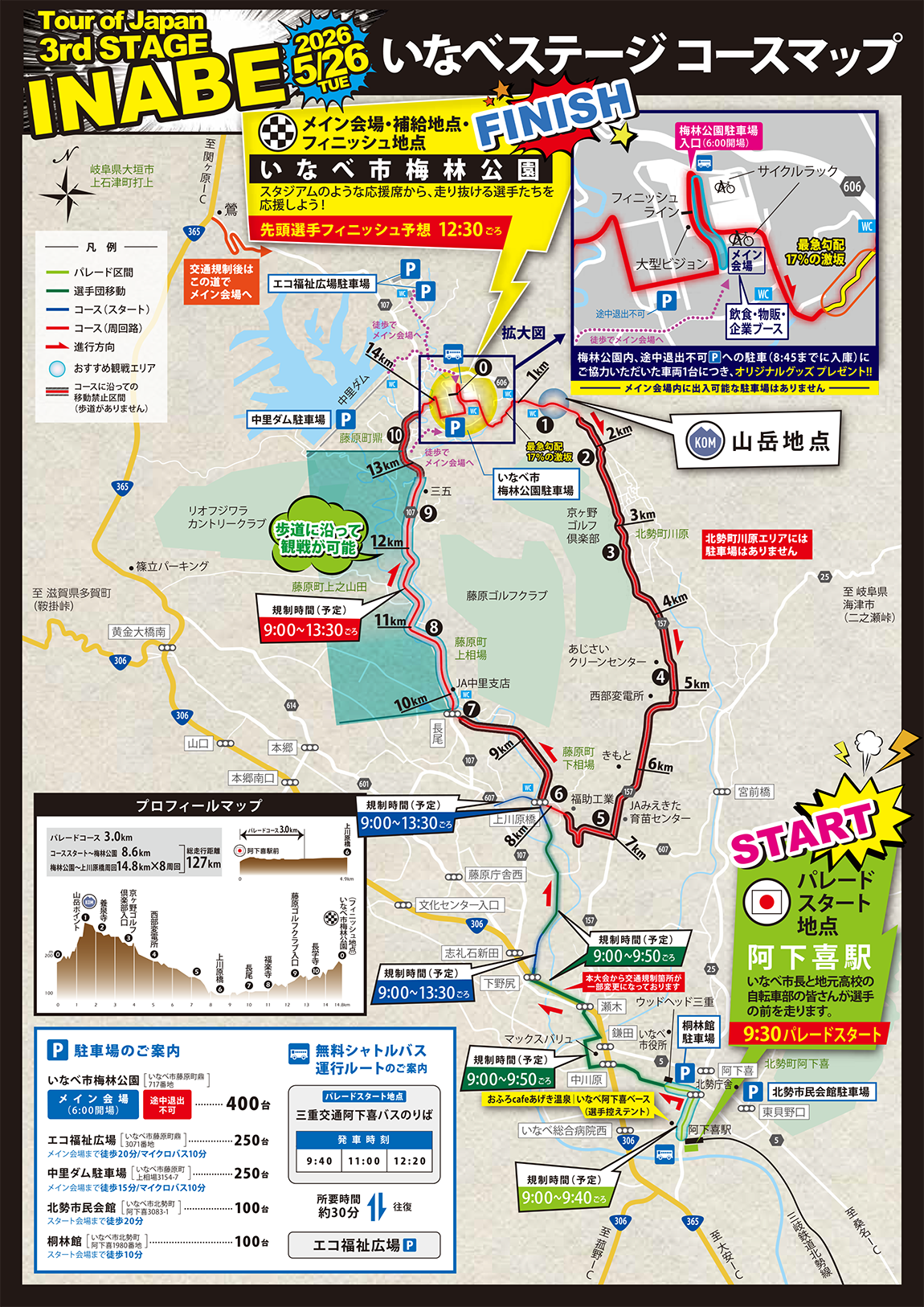 ※出入り可能な一般駐車場もございます。駐車場につきましては、コースマップをご確認ください。